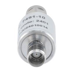 L-com carries a wide range of fixed attenuators with a broad selection of attenuation levels, frequency ranges, and power dissipation ranges. RF microwave attenuators (also known as RF pads) lower the amplitude of a signal (attenuate) a known amount and can be used in a wide variety of applications. These attenuator pads are used when a signal needs to be reduced to protect measurement equipment or other circuitry, to extend the range of power meters and amplifiers, and to impedance match circuits by reducing the VSWR seen by adjacent components. RF attenuators can prevent signal overload in amplifiers, receivers and detectors, adjusting the signal level to a range that is optimal. Few RF components are as commonly used as fixed coaxial attenuators, and L-com carries one of the largest in-stock varieties and ships them same day. The 10 dB Fixed Attenuator LCAT7491-10 is rated to 10 Watts and operates from DC to 6 GHz.