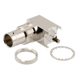 • Picture of 12G SDI BNC Female Right Angle Bulkhead Mount 75 Ohm Connector Solder Attachment Thru Hole PCB
