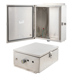 This L-com box is a rugged weatherproof enclosure that is ideal for both indoor and outdoor applications, and they can ship on the same day. Constructed from 16ga. Brushed 304 Stainless Steel that provides superior protection against corrosion, chemicals and wet conditions. The enclosure is constructed with UV protected and impact resistant material to ensure protection in any environment. The integrated welded mounting flange allows the enclosure to be mounted directly to any flat wall surface provided proper screws are used into secure studs. The enclosure can also be mounted to a wide range of pole diameters with one of our optional pole mounting hardware kits. The fully gasketed lid features a 316 stainless steel removable hinge pin that allows for quick removal & reattachment with only a pair of pliers. The enclosure comes with a 304 stainless steel latch with padlock eye allowing you to secure the enclosure from tampering.