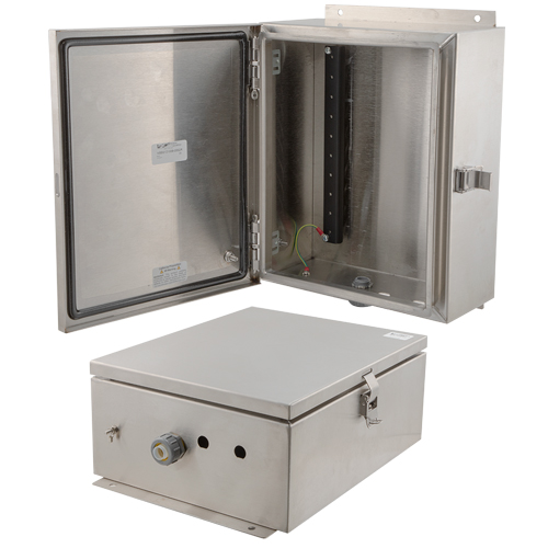 This L-com box is a rugged weatherproof enclosure that is ideal for both indoor and outdoor applications, and they can ship on the same day. Constructed from 16ga. Brushed 304 Stainless Steel that provides superior protection against corrosion, chemicals and wet conditions. The enclosure is constructed with UV protected and impact resistant material to ensure protection in any environment. The integrated welded mounting flange allows the enclosure to be mounted directly to any flat wall surface provided proper screws are used into secure studs. The enclosure can also be mounted to a wide range of pole diameters with one of our optional pole mounting hardware kits. The fully gasketed lid features a 316 stainless steel removable hinge pin that allows for quick removal & reattachment with only a pair of pliers. The enclosure comes with a 304 stainless steel latch with padlock eye allowing you to secure the enclosure from tampering.