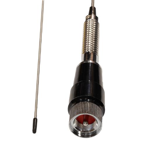 L-com’s LCANRBD1082 is a high power whip antenna designed for handheld radios, vehicles, and base stations in UHF/VHF communications. This omnidirectional antenna features a UHF Male Connector. Our dual-band antenna can operate at frequencies ranging from 144 to 148 MHz with 3 dBi gain and 420 to 450 MHz with 5.5 dBi gain. This antenna is stocked to be readily available for same-business-day shipment.