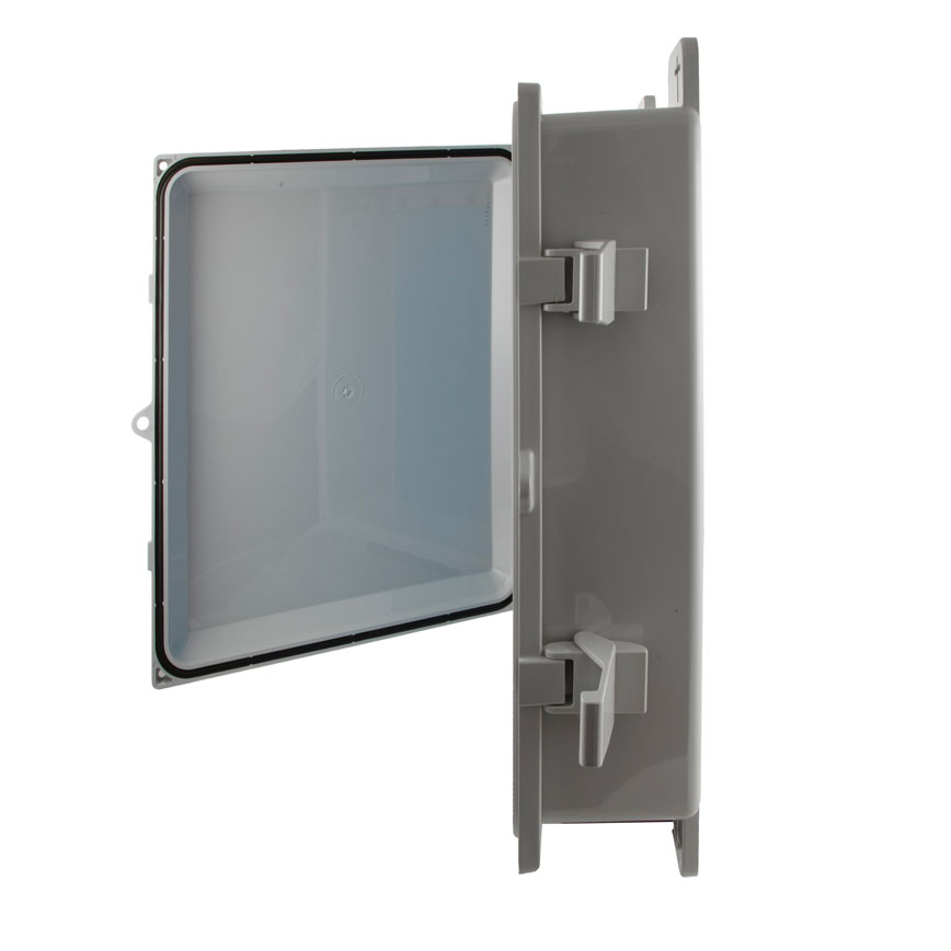 The lid features a non-metallic hinge system that allows for quick removal & can be reattached just as quickly without the need for any tools. The Lid also comes with a non-metallic locking hasp to secure the enclosure from tampering.