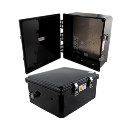 The box is a rugged weatherproof enclosure that is ideal for both indoor and outdoor applications. Constructed from High-Impact, UV Resistant Polycarbonate material that provides superior durability to impacts and ease of modification while maintaining minimum weight. It is well suited for high temperature or corrosive environments. The included wall mount brackets come uninstalled and bagged with their hardware inside of the enclosure. Once the brackets are installed the enclosure can be mounted directly to any flat wall surface provided proper screws are used into secure studs. The brackets, once installed, also allow you to use our HGX-PMT pole mount kits. The lid features a non-metallic hinge system that allows for quick removal & can be reattached just as quickly without the need for any tools. The enclosure comes with a pair of stainless-steel latches with padlock eyes allowing you to secure the enclosure from tampering. The enclosure comes in black.