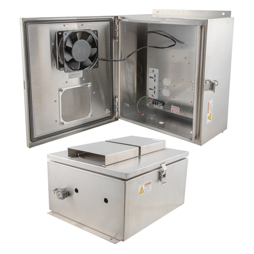 To help ensure trouble-free operation of electronic equipment, proper operating temperatures inside an enclosure needs to be controlled. With the built-in heater and cooling fan, internal temperatures can be better maintained. This model is ideal in Hot and/or Cold environments.