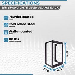 L-com stocks a wide selection of swing gate open wall mount racks for SOHO, A/V, studio, data center, and IT closet/ wiring rooms industries that ship the same business day as ordered from our warehouse. Make your online purchase right now to take advantage of our same-day shipping. For further information on similar products, our expert technical support and knowledgeable sales team can help you get the ideal 15U network racks as per your requirements.