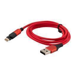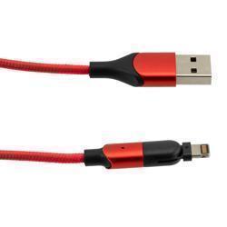 180 degrees Rotating Head Red Nylon Braided Cable, USB 2.0 A Male to Lightning Compatible Male, 5 Volt, 2.4 Amp, 1 Meter