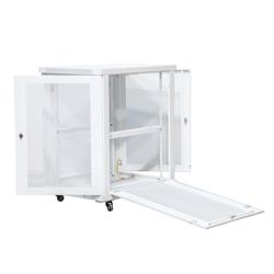 L-com’s LC-SMT6818-W is a 18U mid-depth floor cabinet that is finished in RAL9003 (signal white). This 19-inch mid depth cabinet has square hole/cage nut rail type mounting, and the mounting rails have appropriate RU markings. Mid-depth 33-inch (840mm) depth,19-inch wide, RAL9003 signal white cabinets provide a professional look while allowing easy cabling access and visibility for all mounted components. A 19-inch-width mid-depth cabinet is a standard-sized equipment mount that is commonly used in data rooms, server rooms, telecom, IT, and AV installations. For safely mounting servers, switches, A/V, and other related equipment, cold-rolled steel offers strength. Weight capacity to secure up to 1000 lbs of equipment. Mid Depth cabinets are compliant with: CE, EIA/ECA-310-E, HIPAA, NEMA Rated Type-1, PCI.