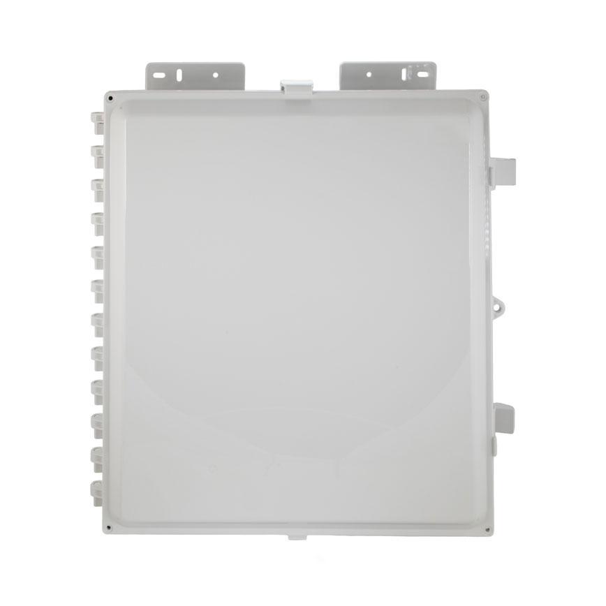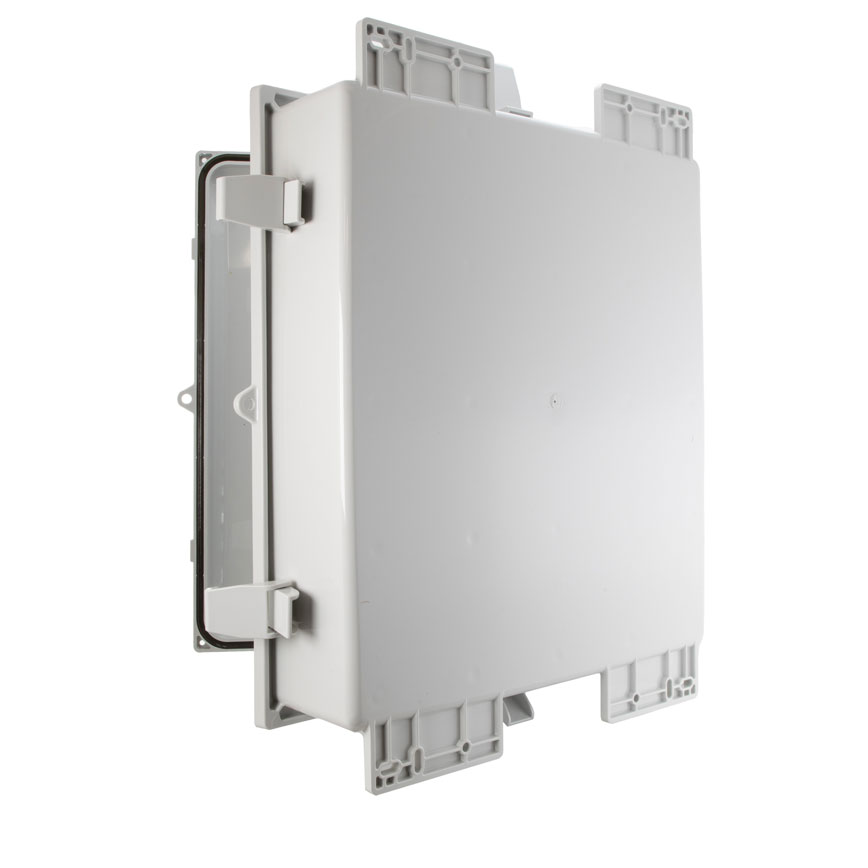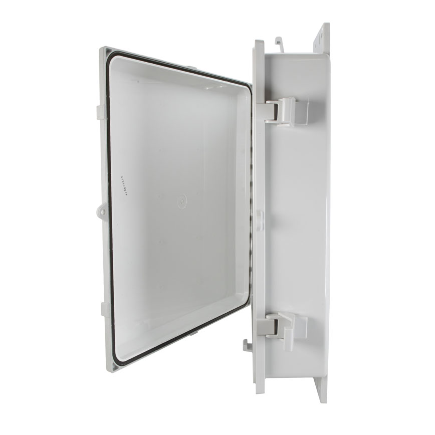 The box is a rugged weatherproof enclosure that is ideal for both indoor and outdoor applications. Constructed from High-Impact, UV Resistant Polycarbonate material that provides superior durability to impacts and ease of modification while maintaining minimum weight. It is well suited for high temperature or corrosive environments. The shallow depth design while maintaining industry standard height/width dimensions is ideal for low profile applications.