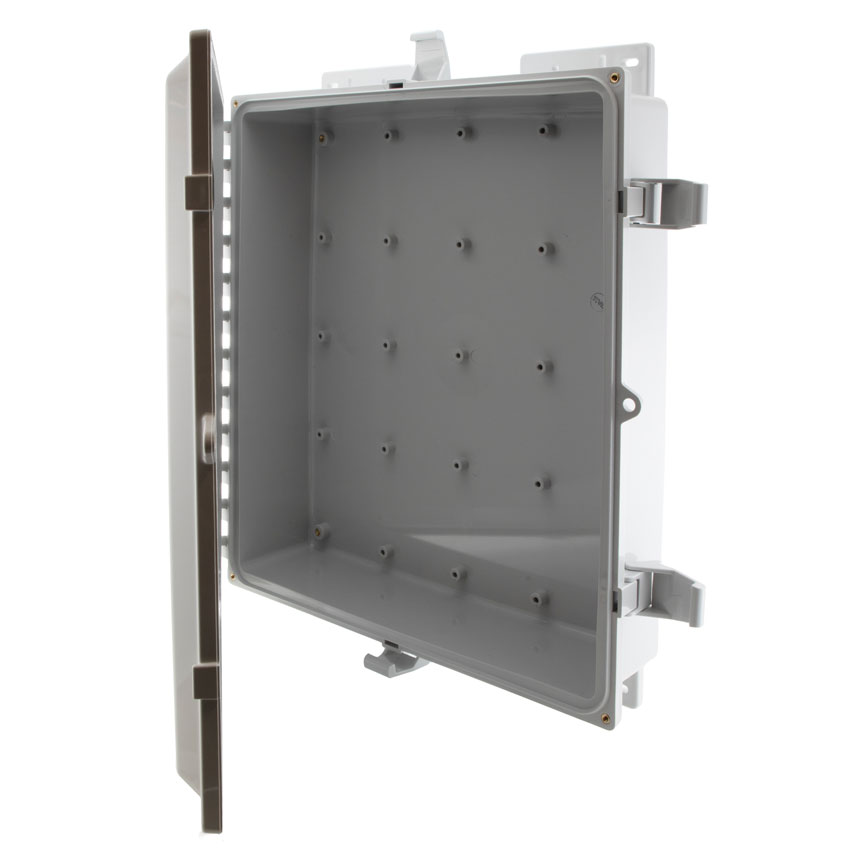 The lid features a non-metallic hinge system that allows for quick removal & can be reattached just as quickly without the need for any tools. The Lid also comes with a non-metallic locking hasp to secure the enclosure from tampering.
