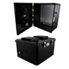 The box is a rugged weatherproof enclosure that is ideal for both indoor and outdoor applications. Constructed from High-Impact, UV Resistant Polycarbonate material that provides superior durability to impacts and ease of modification while maintaining minimum weight. It is well suited for high temperature or corrosive environments. The lid includes two vents with installed rain guards and filters. The included wall mount brackets come uninstalled and bagged with their hardware inside of the enclosure. Once the brackets are installed the enclosure can be mounted directly to any flat wall surface provided proper screws are used into secure studs. The brackets, once installed, also allow you to use our HGX-PMT pole mount kits. The lid features a non-metallic hinge system that allows for quick removal & can be reattached just as quickly without the need for any tools. The enclosure comes with a pair of stainless-steel latches with padlock eyes allowing you to secure the enclosure from tampering. The enclosure comes in black.