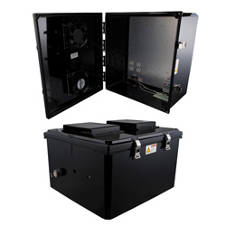 To help ensure trouble-free operation of electronic equipment, proper operating temperatures inside an enclosure needs to be controlled. With the built-in heaters & dual cooling fans, internal temperatures can be better maintained. This model is ideal in hot and/or cold environments. For Heating the NBBPC181610-1HFA2 includes two thermostat-controlled 200W (400W total) heaters. The heaters do not require the use of any of the AC outlets, leaving them all available for your equipment. No extra room for the heaters is required since they are mounted underneath the plate.
