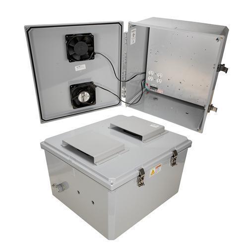 - Features aluminum mounting plate with surge protected duplex 120 VAC outlets & solid state thermostat controlled heating and cooling system