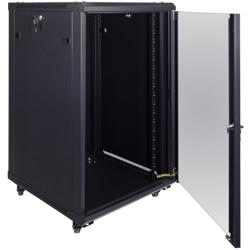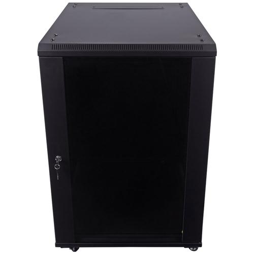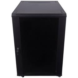L-com’s LC-SMA6618 is a wall-mount or freestanding cabinet designed for organizing and securing your 19"" standard rack-mount servers and networking equipment, making it an essential component of any modern IT infrastructure. This network cabinet comes in a Black powder coat finish and has a reversable tempered glass door. Built for durability with heavy-duty cold-rolled steel, this cabinet provides the strength needed to securely mount servers, switches, A/V and other related equipment. This network cabinet is a great option for SOHO, A/V, studio, telecom, IT and data applications.