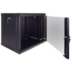 L-com’s LC-SMA6409 is a wall-mount or freestanding cabinet designed for organizing and securing your 19"" standard rack-mount servers and networking equipment, making it an essential component of any modern IT infrastructure. This network cabinet comes in a Black powder coat finish and has a reversable tempered glass door. Built for durability with heavy-duty cold-rolled steel, this cabinet provides the strength needed to securely mount servers, switches, A/V and other related equipment. This network cabinet is a great option for SOHO, A/V, studio, telecom, IT and data applications.