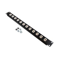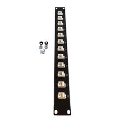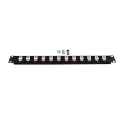 • 19" x 1.75" (1U) Rack panel with 12 Category 5e Keystone Low Profile Mini-couplers for high-speed data applications
