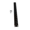 The L-com PR175B-C6-12 is a 1U (1.75") 19-inch rack panel that comes with 12 Category 6 Keystone style couplers installed and is made from 16-gauge cold-rolled steel, ensuring strength and durability. This panel is finished with a black powder coat for additional protection. L-com has the largest in-stock selection of 19-inch rack panels for international and domestic orders with same-day shipment. We are a global leader of wired and wireless connectivity products, offering a wide range of solutions across many key industries, including electronics, medical, industrial automation, military, and telecommunication. For further information on similar products, our expert technical support and knowledgeable sales team can help you find the right panel solution for your requirements.