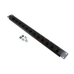• 19" x 1.75" (1U) Rack panel with 12 Category 6a Keystone couplers for high-speed data applications