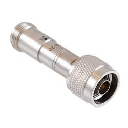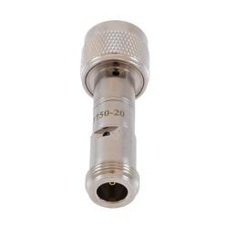 This RF fixed attenuator has N-type male to female connector gender configuration. Our RF attenuator is rated for a nominal attenuation value of 20 dB. The LCAT7750-20 attenuator from L-com is rated for a maximum frequency up to 4 GHz. This fixed coaxial attenuator is suitable for instrumentation, cable TV and video distribution, prototyping and characterization, production systems applications. Our connectorized bidirectional fixed attenuator is the best solution for reducing the power levels of a signal by a fixed amount with little or no reflections.