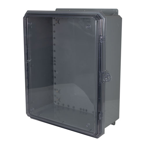 The box is a rugged weatherproof enclosure that is ideal for both indoor and outdoor applications. Constructed from High-Impact, UV Resistant Polycarbonate material that provides superior durability to impacts and ease of modification while maintaining minimum weight. It is well suited for high temperature or corrosive environments. The integrated wall mount flange allows the enclosure to be mounted directly to any flat wall surface provided proper screws are used into secure studs. The integrated flange also allows you to use compatible HGX-PMT pole mount kits to mount to a variety of pole diameters. The lid features a Stainless Steel piano style hinge pin system that allows for quick removal & can be reattached just as quickly for maximum access and flexibility to install equipment. The enclosure comes with a pair of Non-Metallic locking latches to provide a tight NEMA Type 6P/ IP68 rated* seal. The lid includes a padlock eye allowing you to secure the enclosure from tampering or unauthorized access. The enclosure comes in a Dark Gray (Pantone 422C)