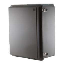 The NBF201610-KIT01 is a UL® Listed rugged weatherproof enclosure that is ideal for both indoor and outdoor applications. Constructed from molded halogen free self extinguishing fiberglass reinforced polyester, it is well suited for high temperature or corrosive environments. The integrated mounting flange allows mounted directly to any flat wall surface provided proper screws are used into secure studs. The enclosure can also be mounted to a wide diameter range of poles with one of our optional pole mounting hardware kits. The fully gasketed lid features a stainless steel continuous hinge and a stainless steel quick release latch with padlock hasp. The enclosure material is UV stabilized and comes in a light gray color.