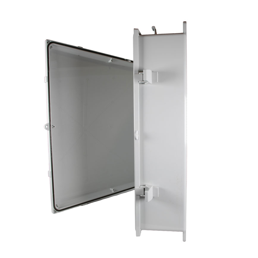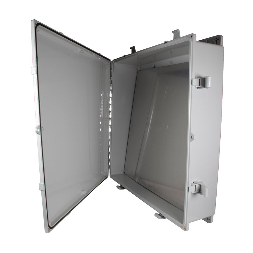 The lid features a non-metallic hinge system that allows for quick removal & can be reattached just as quickly without the need for any tools. The Lid also comes with a non-metallic locking hasp to secure the enclosure from tampering.
