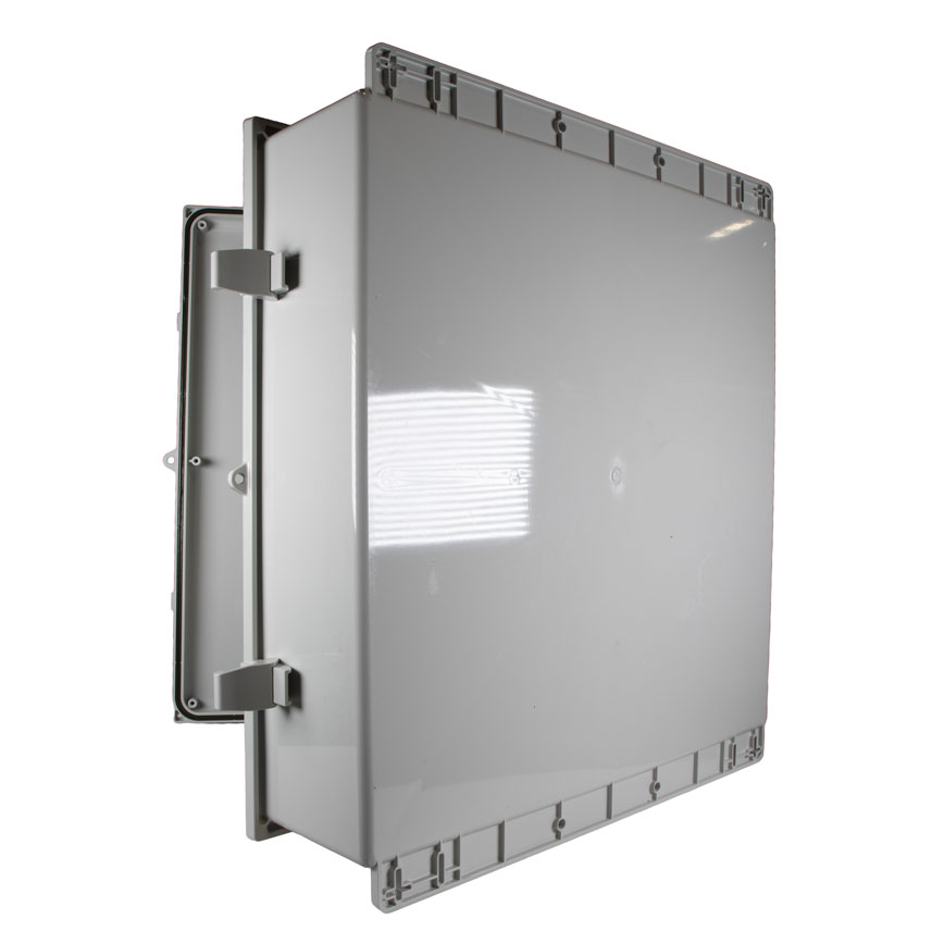 The box is a rugged weatherproof enclosure that is ideal for both indoor and outdoor applications. Constructed from High-Impact, UV Resistant Polycarbonate material that provides superior durability to impacts and ease of modification while maintaining minimum weight. It is well suited for high temperature or corrosive environments. The shallow depth design while maintaining industry standard height/width dimensions is ideal for low profile applications.