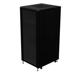 L-com's LC6727-1032-G-BK-Kit AV Floor Standing rack cabinet is suitable for racking and storing a range of 19” equipment such as audio-visual components, servers, patch panels, PDUs, and routers. The 27U AV rack cabinet comes pre-assembled with 4 shelves (load capacity rating of 44 pounds each) for easy setup and has a low shipping cost. The AV cabinets are 28 in (700mm) depth with adjustable internal mounting rails and comes with front, rear, left, and right locks.