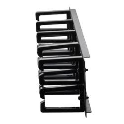 L-com’s metal base horizontal cable manager is fully assembled, for easy installation. This horizontal cable manager with 5 plastic cable rings has measurements of 19 inches in length, 3.1 inches wide, and 3.5 inches high. Our metal base horizontal cable manager can be mounted on standard 19-inch racks and cabinets and manages everything from small to large bundles of cables and patch cords. The rack-mounted 2U horizontal cable manager can reduce cable tension and improve passive airflow. Make your online purchase right now to take advantage of our same-day shipping.