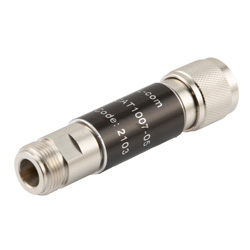LCAT1007-05 is a 5dB RF fixed attenuator from L-com with excellent electrical performance. The attenuator has operating frequency range from DC to 18GHz and coaxial in-line design with N-type male connector on one end and N-type female connector on the other. The part is available in stock with same day shipping.