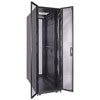 The L-com LC42USRC1200GDFRFC 42U commercial network server cabinet has the capacity and quality needed to complete your high-density applications that rack and store a variety of 19-inch equipment such as servers, patch panels, PDUs, routers, and more. This commercial cabinet is heavy-duty, with the 42U version supporting a static equipment weight capacity of 3000 lbs. Our cabinet is easily assembled for quick installation and contains heavy-duty locking casters for movement and leveling feet for usage when the fully racked cabinet must remain in place. This network enclosure features adjustable square cage nut mounting rails with RU-markings. The cabinet also incorporated full-height wire management rails, which made it easier to finish a neat and clean installation. The mounting rail depth is marked and adjustable in 10 mm increments between 6 and 37.5 inches. The rack's welded structure is made of heavy-duty cold rolled steel and has a long-lasting, elegant black powder coating.