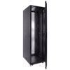 The L-com LC42USRC800PDCM 42U commercial network server cabinet has the capacity and quality needed to complete your high-density applications that rack and store a variety of 19-inch equipment such as servers, patch panels, PDUs, routers, and more. This commercial cabinet is heavy-duty, with the 42U version supporting a static equipment weight capacity of 3000 lbs. Our cabinet is easily assembled for quick installation and contains heavy-duty locking casters for movement and leveling feet for usage when the fully racked cabinet must remain in place. This network enclosure features adjustable square cage nut mounting rails with RU-markings. The cabinet also incorporated full-height wire management rails, which made it easier to finish a neat and clean installation. The mounting rail depth is marked and adjustable in 10 mm increments between 6 and 21.5 inches. The rack's welded structure is made of heavy-duty cold rolled steel and has a long-lasting, elegant black powder coating.