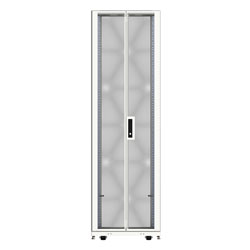 The L-com LC42USRC800GDCM-W 42U commercial network server cabinet has the capacity and quality needed to complete your high-density applications that rack and store a variety of 19-inch equipment such as servers, patch panels, PDUs, routers, and more. This commercial cabinet is heavy-duty, with the 42U version supporting a static equipment weight capacity of 3000 lbs. Our cabinet is easily assembled for quick installation and contains heavy-duty locking casters for movement and leveling feet for usage when the fully racked cabinet must remain in place. This network enclosure features adjustable square cage nut mounting rails with RU-markings. The cabinet also incorporated full-height wire management rails, which made it easier to finish a neat and clean installation. The mounting rail depth is marked and adjustable in 10 mm increments between 6 and 21.5 inches. The rack's welded structure is made of heavy-duty cold rolled steel and has a long-lasting, elegant white powder coat finish.