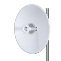The L-com HG4971DP-30DC-NF collapsible parabolic antenna is for point to point communications that uses a parabolic reflector to direct the waves to the receiver in its focal point. It has a frequency range of 4950 to 7125 MHz, providing stability over a wide bandwidth to support gigabit transmissions and has operating temperature ranging from -40°C to 70°C (-32°F to 158°F). This antenna has a 30 dBi high gain, which describes electrical power conversion capability.
