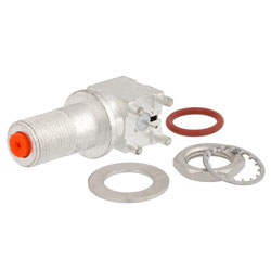 75 Ohm F Female Right Angle Bulkhead Mount Connector Solder Attachment Surface Mount PCB, IP67 Rated