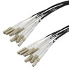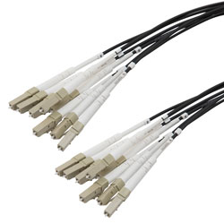 The L-com FCA-8M1LCULCUD2-10 is a multimode OM1, 8 strand fiber optic distribution cable with LC/UPC to LC/UPC connectors. This simplex fiber cable has an LSZH (Low Smoke Zero Halogen) rated jacket that produces less and non-toxic fumes when exposed to fire or high temperature. The L-com FCA-8M1LCULCUD2-10 is constructed with tight buffered multimode OM1 fiber and features an aramid yarn strength member to ensure high tensile strength and long-term stability. This distribution breakout assembly has a 5.6mm black, low smoke, zero halogen (LSZH) 10 meter cable with 2.0mm loose tube LSZH breakouts 0.5 meters in length.