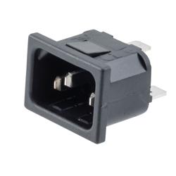 AC PEM C14, 1mm Panel Snap-In, 6.3mm Quick-connect