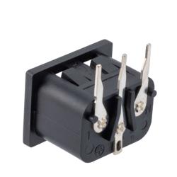 AC PEM C14, 3mm Panel Snap-In, Thru-hole PCB, Right Angle