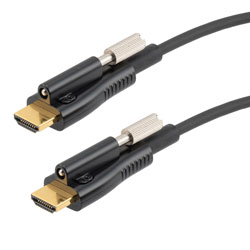 L-com has the largest in-stock selection of armored HDMI 2.0 active optical cable with locking screws, with same-day shipment for domestic and international orders. Make your online purchase right now to take advantage of our same-day shipping. We are a global leader of wired and wireless connectivity products, offering a wide range of solutions across many key industries, including electronics, medical, industrial automation, military, and telecommunication. Our expert technical support and knowledgeable sales team can assist you in obtaining the active optical cable that meets your needs.