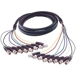 These multiple line coaxial assemblies provide a neatly packaged bundle for use in such applications as video servers. They replace individual coaxial runs that can be difficult to handle in high density applications eliminating unsightly cable entanglements. Individual coaxial lines are color coded to assure proper connections are made. All coaxial lines are 75 Ohms impedance and feature full shield coverage comprised of copper braid and aluminum backed Mylar. BNC connectors are true 75 Ohm for distortion free video signal transmission. Available in 6 standard lengths from 5 to 25 feet.