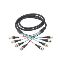 This series of four line 75 Ohm cable is perfect for the transmission of a both audio and video signals. The true 75 Ohm BNC male connectors provide impedance matched performance to assure a clean signal. The molded strain reliefs on the BNC connectors and on the cable jacket result in a durable and long lasting assembly. Individual cables are color coded Red, Green, Blue and Black to assure correct hookup. Available in 6 standard lengths from 5 to 50 ft