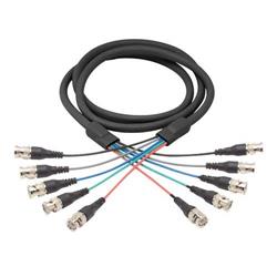 This series of five line 75 Ohm cable is perfect for the transmission of both audio and video signals. The true 75 Ohm BNC male connectors provide impedance matched performance to assure a clean signal. The molded strain reliefs on the BNC connectors and on the cable jacket result in a durable and long lasting assembly. Individual cables are color coded Red, Green, Blue, Black and Gray to assure correct hookup. Available in 6 standard lengths from 5 to 50 ft.