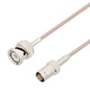 BNC plug to BNC jack cable assembly LCCA31345-FT1 is manufactured with a flexible coax. These flexible BNC to BNC cable assemblies use RG316 coax (RG316 flexible) and are single shielded. This radio frequency cord is wrapped in an FEP jacket which has a 0.102 inch diameter and provides low loss with a maximum VSWR of 1.4:1. L-com single shielded BNC male to BNC female cable assembly using RG316 coax, 1 FT is built from quality components by skilled assemblers with many years of experience.