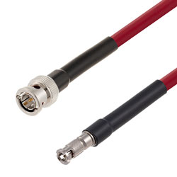 L-com's LCCA30798/RD-FT6 is a 75 Ohm 6G SDI BNC male to HD-BNC male cable assembly using 1694A-RD coax, 6 FT and ships same-day. These flexible RF cable assemblies are ideal for applications where flexure is required. Our L-com BNC to HD-BNC cable assembly has a male to male gender configuration with 75 Ohm flexible 1694A-RD series coax and operates to 6 GHz and enables 6Gb/s data transfer rates for high resolution uncompressed video signal transmission. These products offer 4K and Ultra-HD quality signals that meet SMPTE Standard 2081-1. The shielding of this BNC cable is comprised of aluminum polyester.