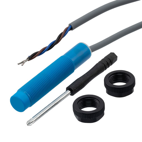 The unshielded sensor has a threaded M12 housing, NPN output and repeat accuracy of better than 5%. This NPN capacitive proximity sensor requires 10 to 30 VDC power supply. Our IoT sensor is available with 2 m 3-wire cable which gives you the right amount of length for your project.