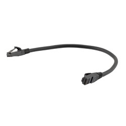 This slim-line industrial outdoor data cable assembly is designed to withstand temperatures between -20 to +60 deg C. The cable assembly has 28 AWG stranded conductors. Our slim-line black Ethernet cable has a 1-foot length. This Ethernet cable assembly has U/UTP construction.