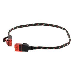 This Cat6a slim flat cable with nylon covered jacket has a 2-foot length. Our flat Ethernet data cable assembly is designed to withstand temperatures between -20 to +60 deg C. This indoor Ethernet cable assembly has an in-series connection and an 8x8, RJ45 connector configuration. Our Ethernet cable assembly has 34 AWG stranded conductors.