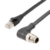 Cat6a Ethernet Economy M12 8 Position X code Cable, Right Angle IP67 M12 Plug to RJ45 Plug, 26AWG Shielded Outdoor VW-1 PVC Black, 15M