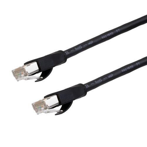 The L-com TMD06014014020-018F is a Category 5e Ethernet data cable assembly with 26 AWG wires. Our economical PVC-rated Ethernet cable assembly has RJ45 male plug to RJ45 male plug connectors. The Category 5e Ethernet data cable assembly has 26 AWG stranded flexible conductors. Our stranded black Category 5e Ethernet data cable is 18 feet long. Make your online purchase right now to take advantage of our same-day shipping.