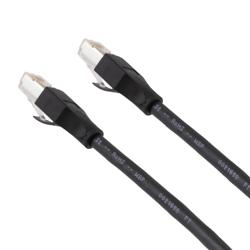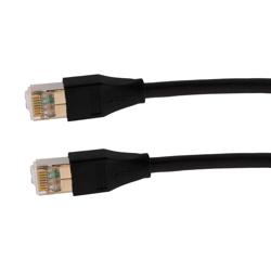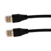 This Cat5e Ethernet cable with 26 AWG stranded conductors is black in color. This Ethernet data cable assembly with an economical PVC jacket is 18 feet long. Our indoor Ethernet cable assembly has an in-series connection and an 8x8, RJ45 connector configuration. The foil shielded Ethernet data cable assembly is designed with an economical PVC jacket. Our Category 5e-rated Ethernet cable assembly has 50um gold-plated RJ45 male connectors. This Category 5e Ethernet data cable has a stranded conductor for flexibility.