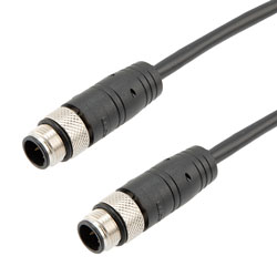 Picture of Category 5e Economy M12 4 Position D code Cable, IP67 M12 Male Plug to IP67 M12 Male Plug, 26AWG Shielded Outdoor VW-1 PVC Black, 0.5M